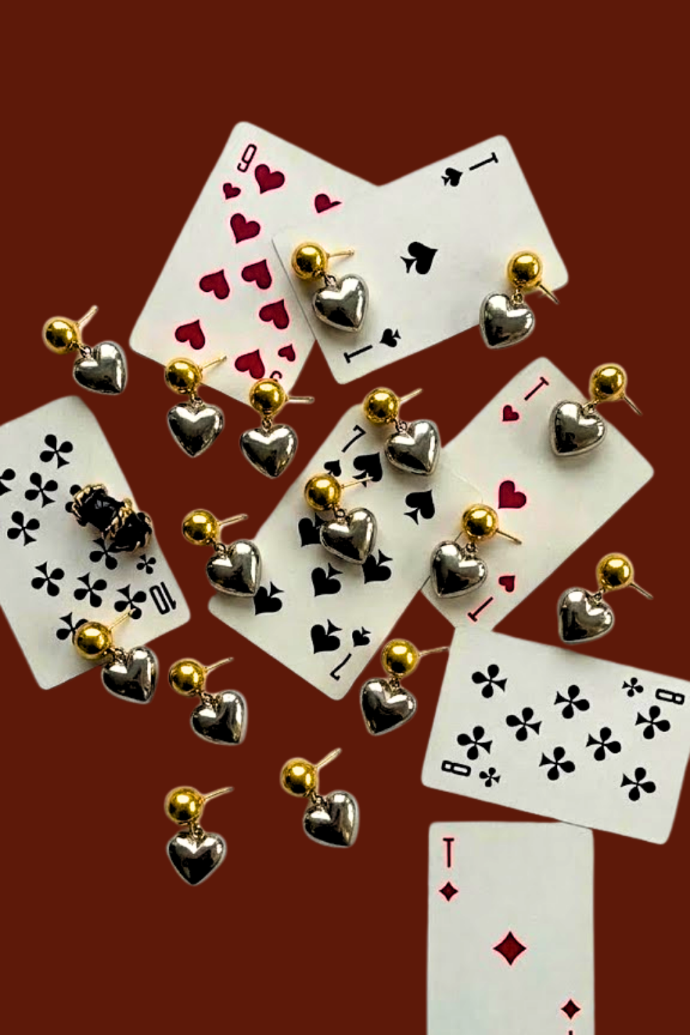 Auskarai su elegantiškomis širdelėmis. Širdelė pritvirtinta prie užsegimo, o tai sukuria papildomą žaismingumą tavo stiliuje.